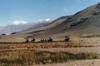 We travel in the shadow of glacier-capped Andean peaks -such as Mercenario