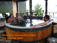 bath in a wood-fired hot tub, overnight at the Altue's Sea Kayaking
